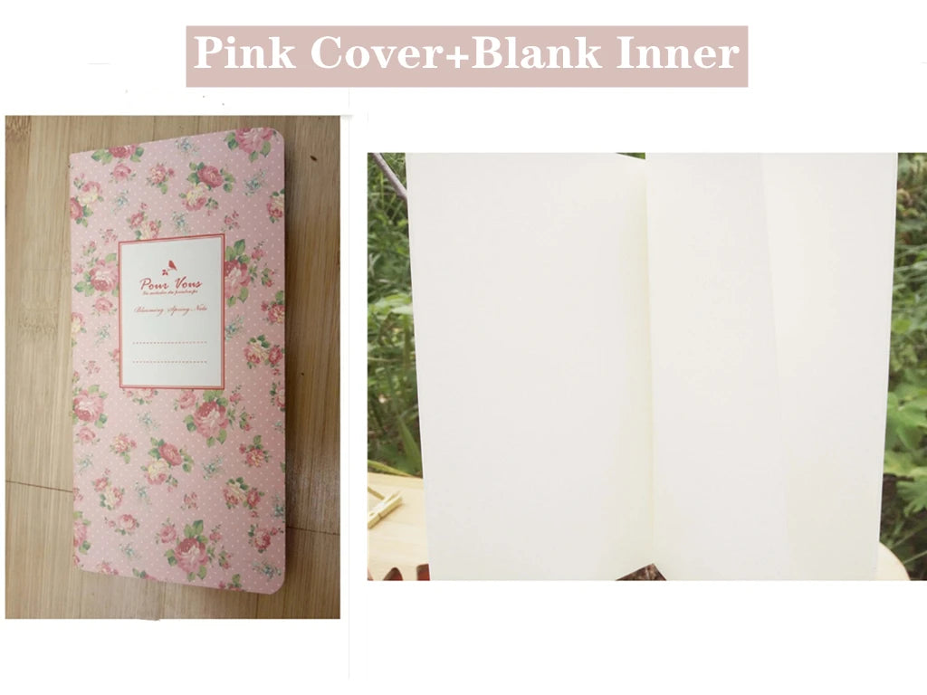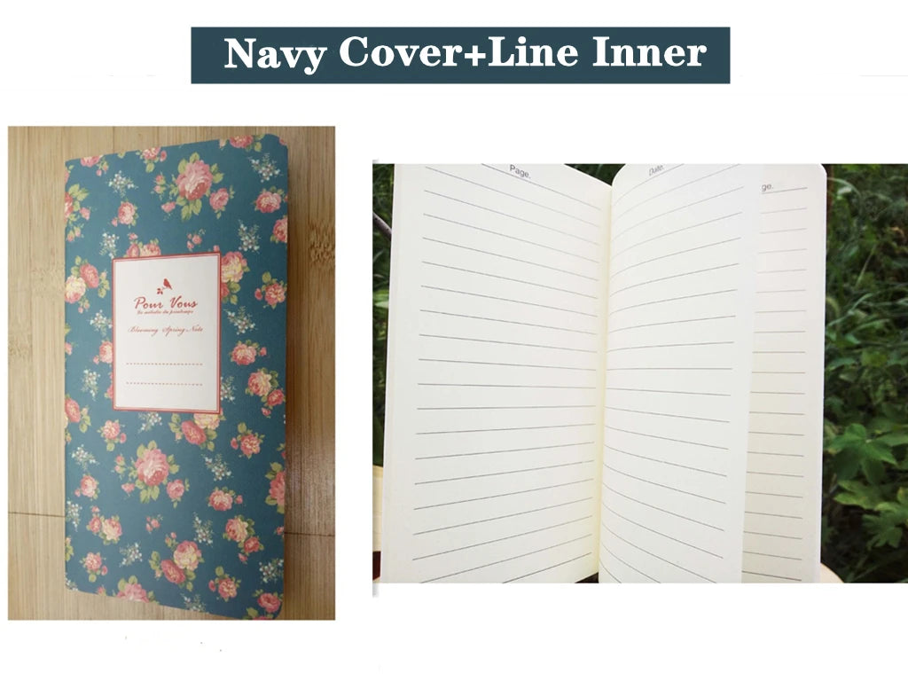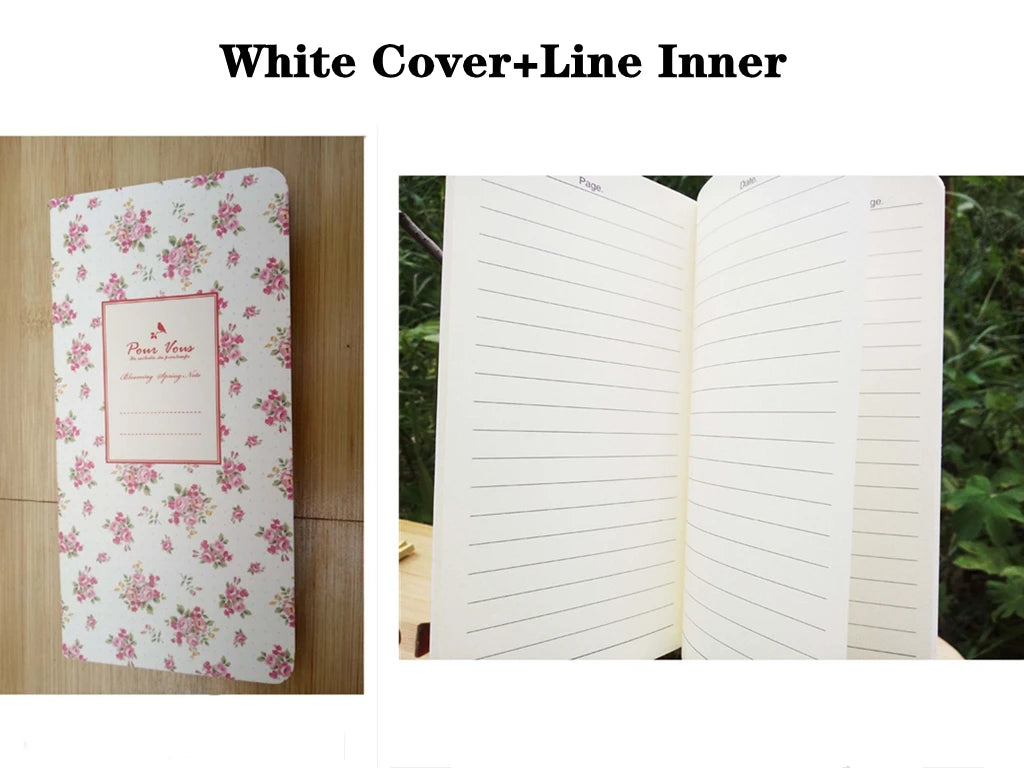 9x13.7cm Small Flower Cover Notebook Portable 24 Sheets Blank Lined Paper Journal Diary Sketchbook for School Office Stationery